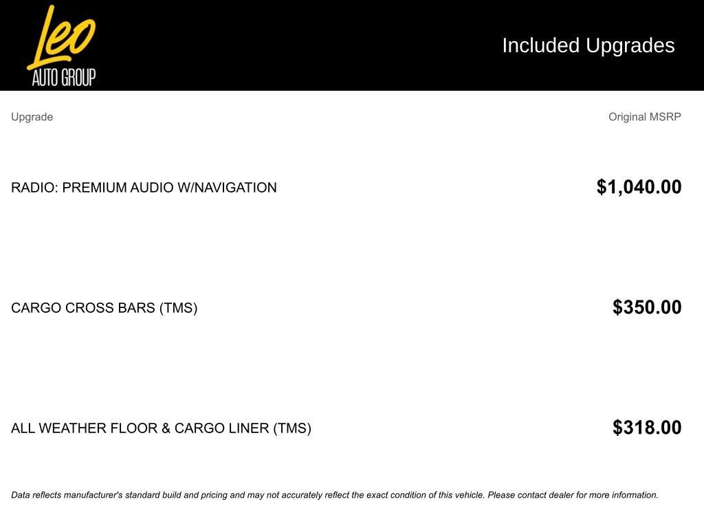Additional $251.05 doc fee, tax, title, and registration are not included in the advertised sale price. We take every effort to ensure the advertised pricing information is accurate, however, we recommend you contact the dealership to confirm pricing information and inventory.