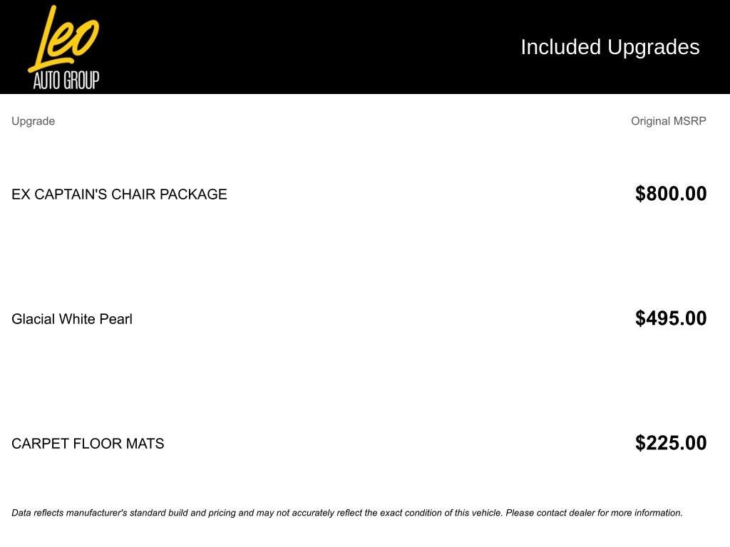 2nd Row Captain Chairs, EX Captain's Chair Package, Navigation System, Power Liftgate, Power moonroof, Wheels: 20 x 7.5 Black Finish.